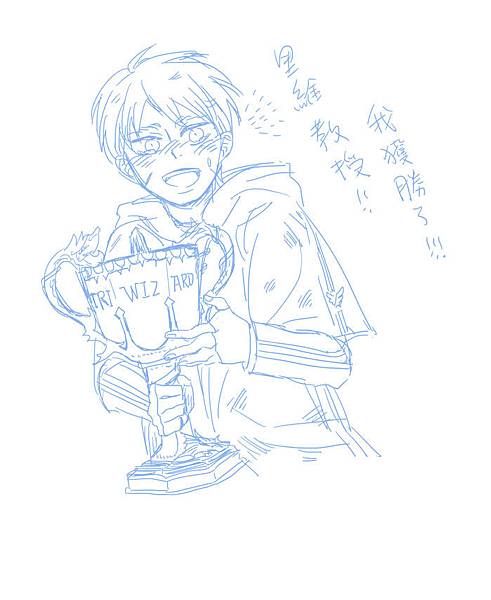 門被一把推開,已比自己還高的男孩臉頰泛紅地站在門口,一手抱著獎盃,一手拿著魔杖對著自己手忙腳亂地施展潔淨咒,直到身上和鞋底一塊污泥也不見,才踏入室內。